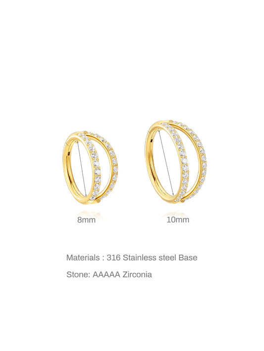 G23 Titanium Waterproof Double Hoop Cartilage Earring 16G – 5A CZ, Multiple Sizes