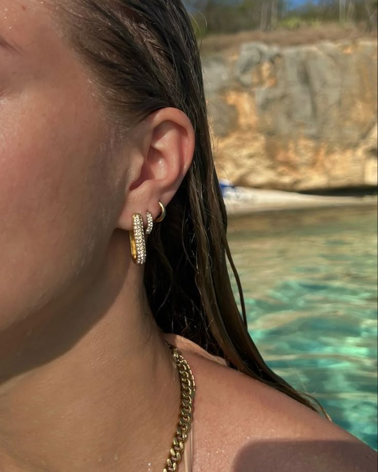 925 Classic Waterproof Pave Hoop Huggies Earrings