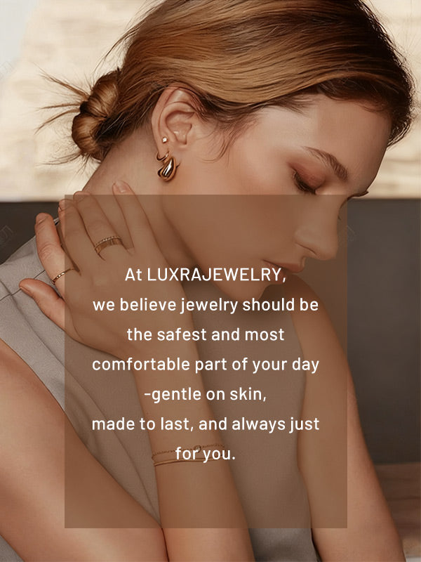 Luxra designs piercing-safe jewelry for sensitive skin. Flatback posts that don’t poke, nickel-free & hypoallergenic metals, and finishes made to last—so your ears feel as good as they look. Build a stack that’s unmistakably yours.