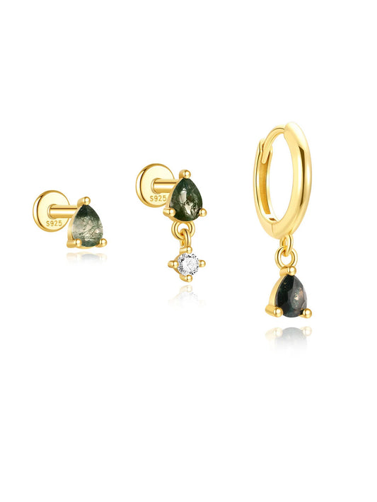 925 Sterling Silver Water Drop Flower Piercing Studs
