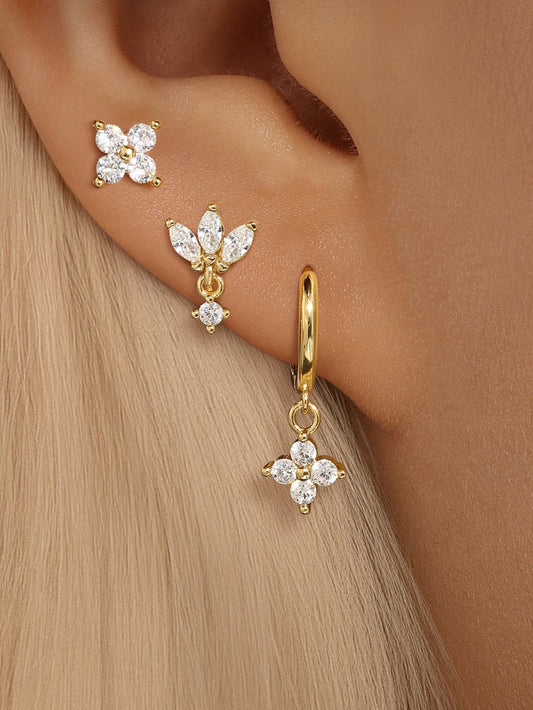 925 Sterling Silver Flower Pave Zircon Earring Series
