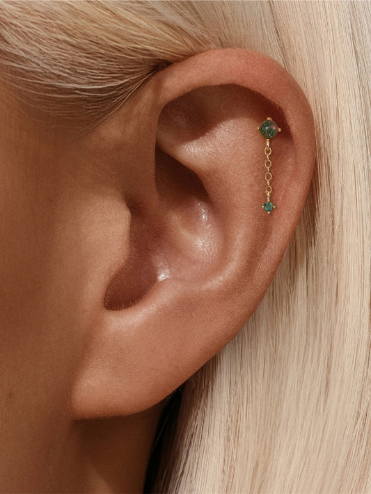 925 Sterling Silver Natural Moss Agate Drop Chain Flat Back Stud
