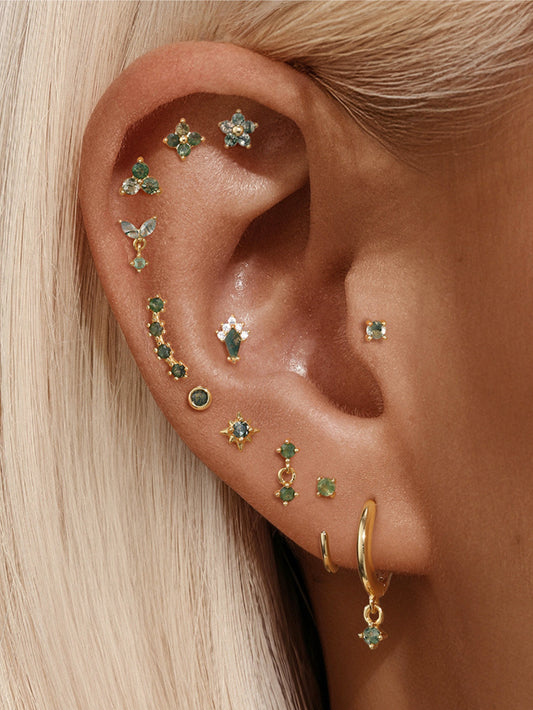 925 Sterling Silver Natural Moss Agate & Crystal Drop Flat Back Stud