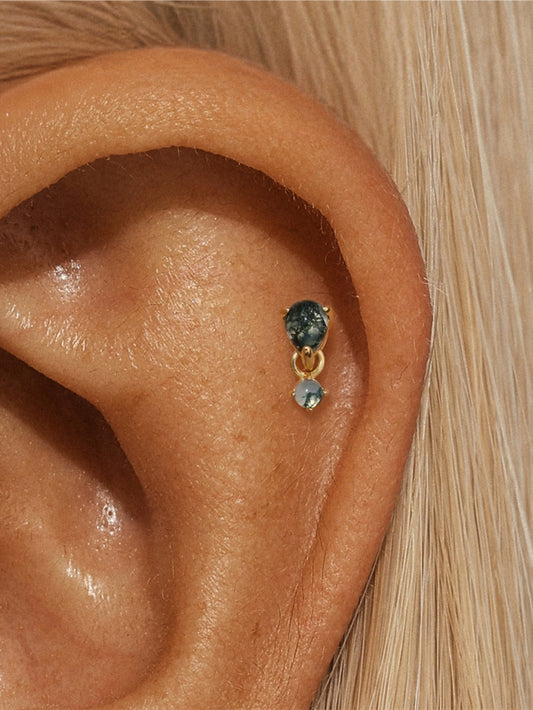 925 Natural Moss Agate Teardrop Vertical Helix Stud