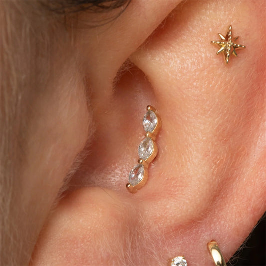 S925 Sterling Silver Trio Zircon Reversible Flatback Piercing Stud