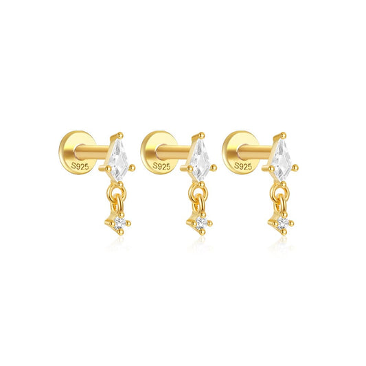 S925 Pendant Zirconia 3-Piece Piercing Stud Earrings