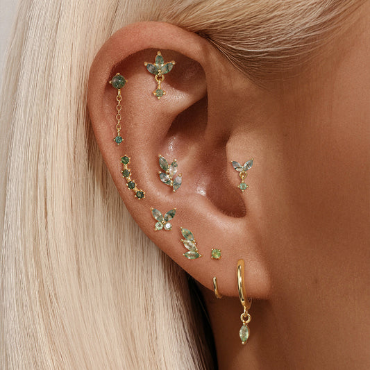 S925 Moss Agate Dangle Flatback Piercing Stud