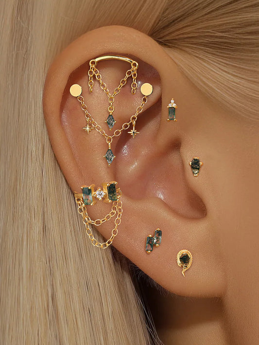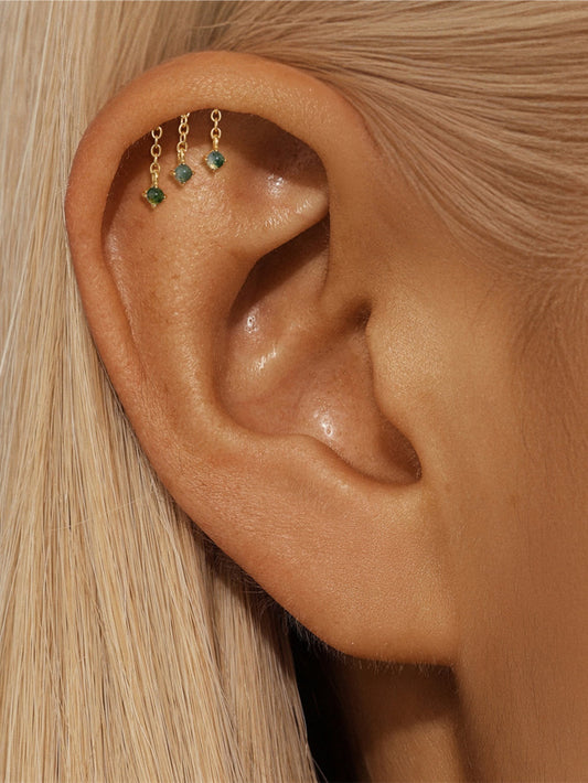 925 Sterling Silver Water Grass Agate Tassel Cartilage Piercing Studs