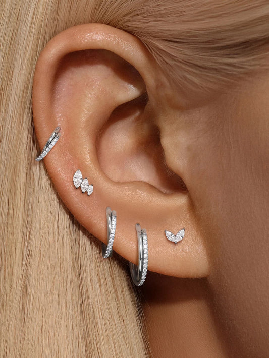 S925 Sterling Silver Petal Cubic Zirconia Hoop & Stud Earrings Set