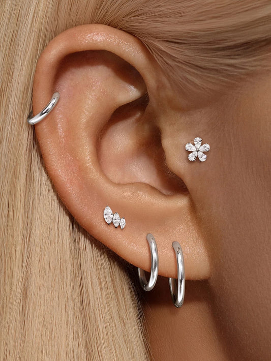 S925 Floral Zircon Flat Back Piercing Stud Earrings Jewelry Set