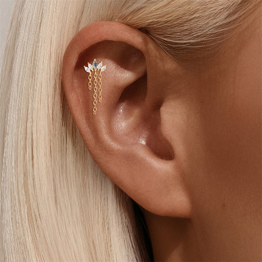 925 Sterling Silver Water Grass Agate Tassel Cartilage Piercing Studs