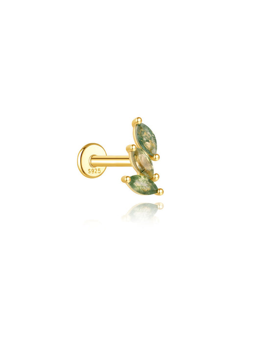 S925 Moss Agate Minimalist Leaf Flatback Piercing Stud