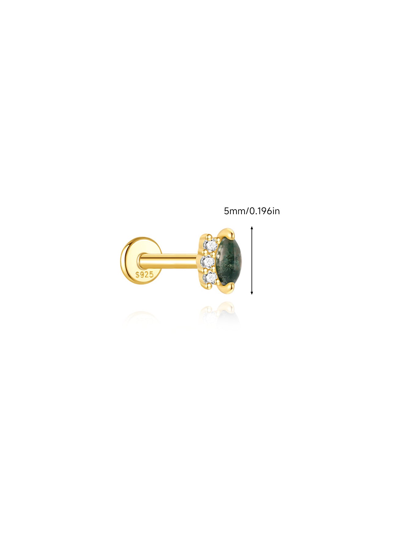 925 Natural Moss Agate & CZ Side-Row Flat Back Stud