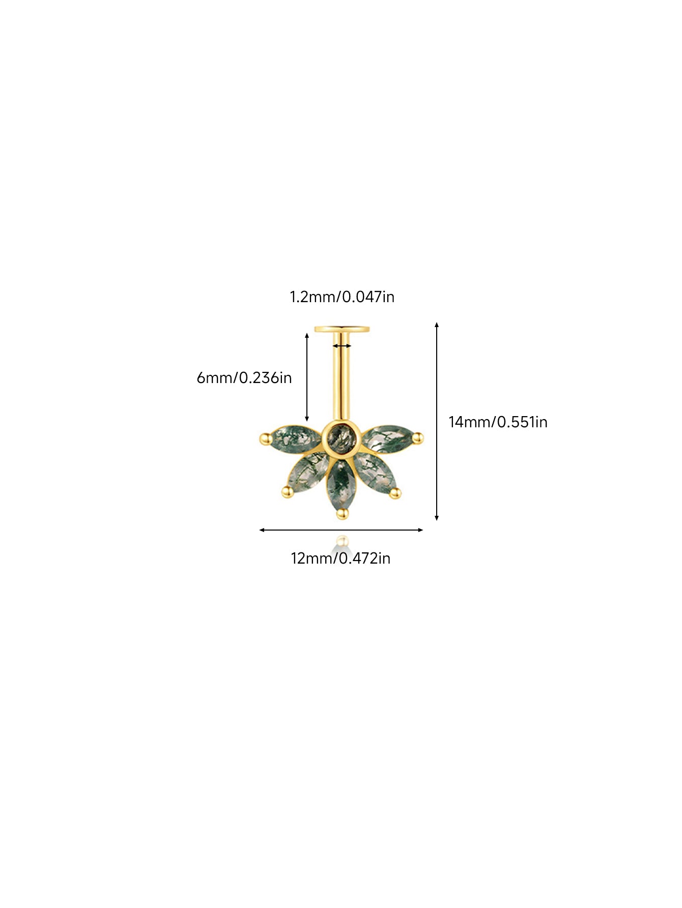 925 Natural Moss Agate Flower Vertical Helix Stud