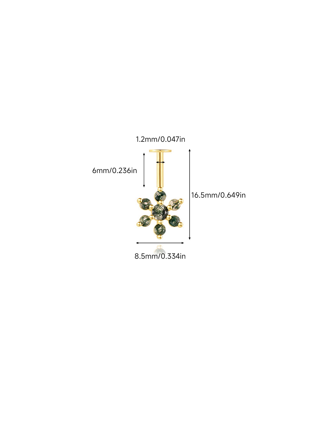 925 Natural Moss Agate Snowflake Vertical Helix Stud