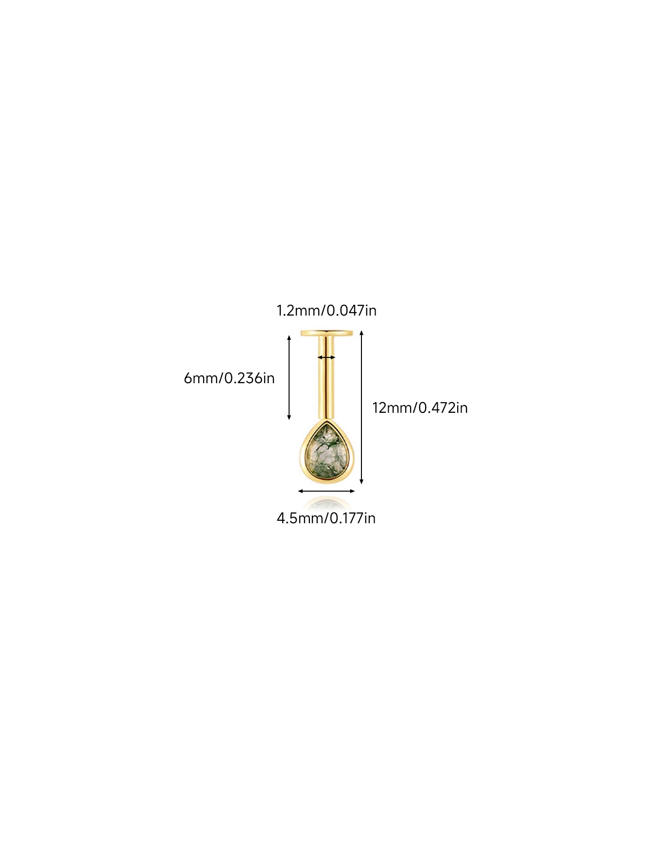 925 Natural Moss Agate Teardrop Vertical Helix Stud