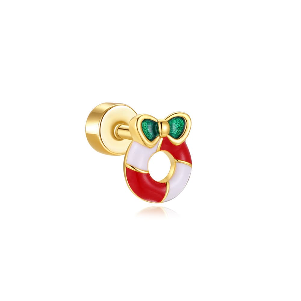 925 Sterling Silver Christmas Bell Helix Flat Back Piercing Studs