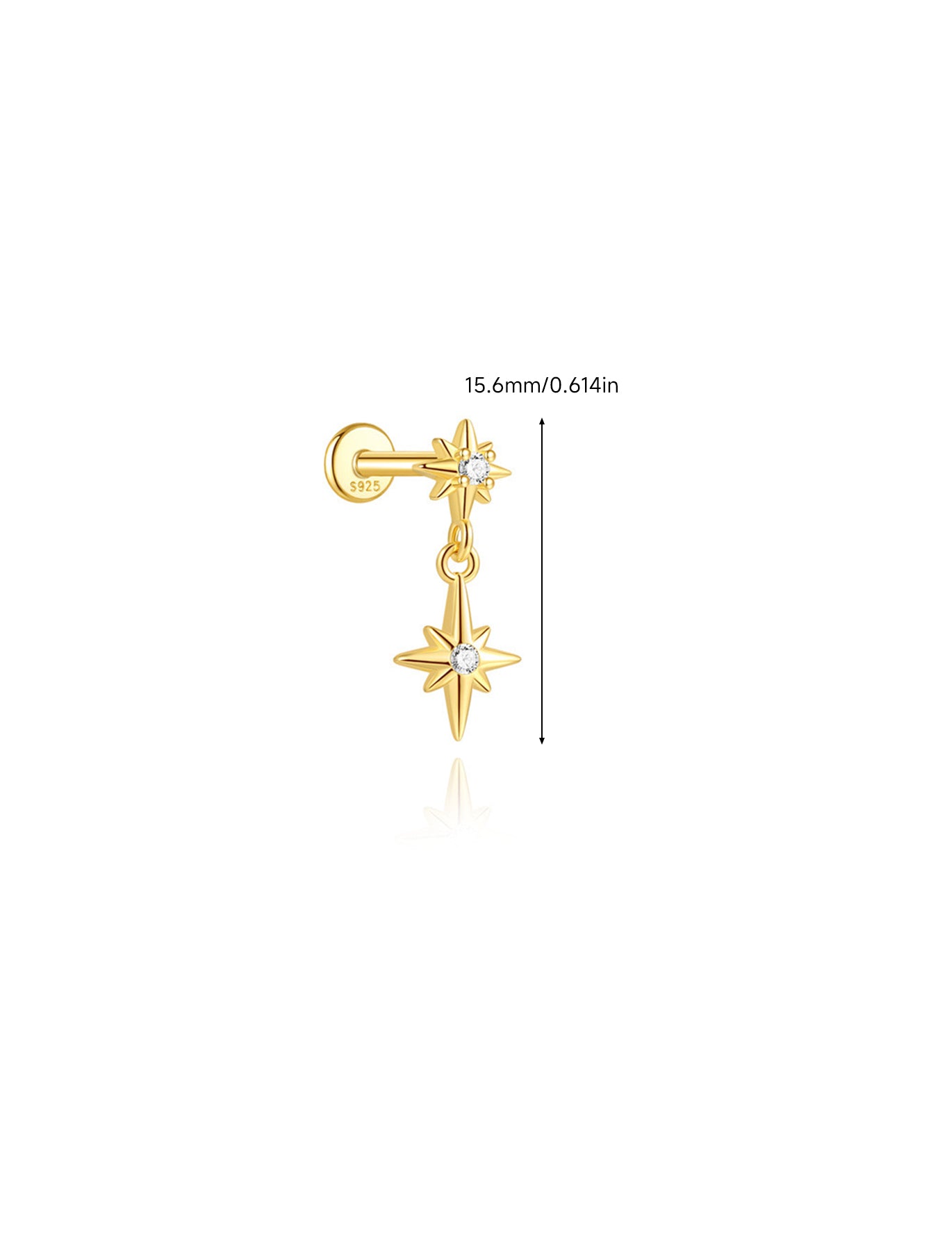 925 Sterling Silver Double Star Dangle Flat Back Stud Earring