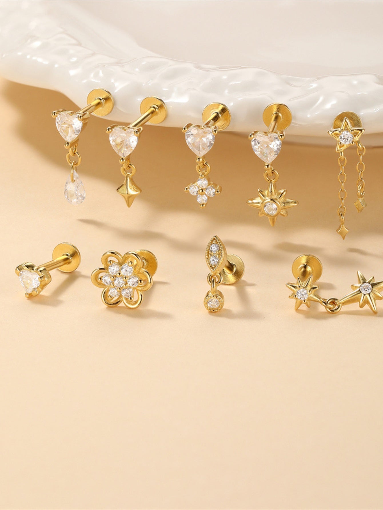 925 Sterling Silver Heart & Star Dangle Flat Back Earring