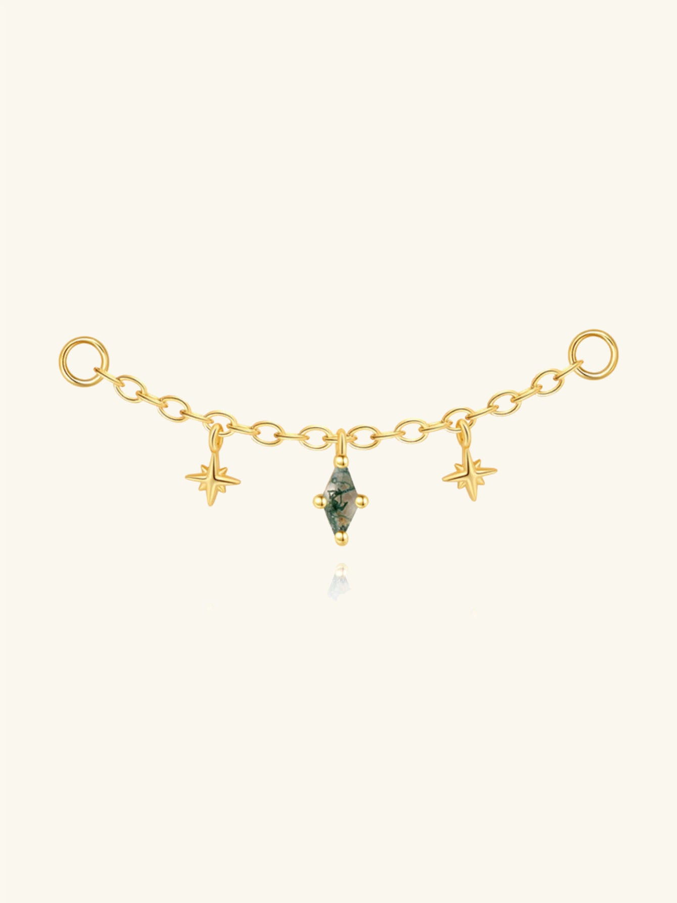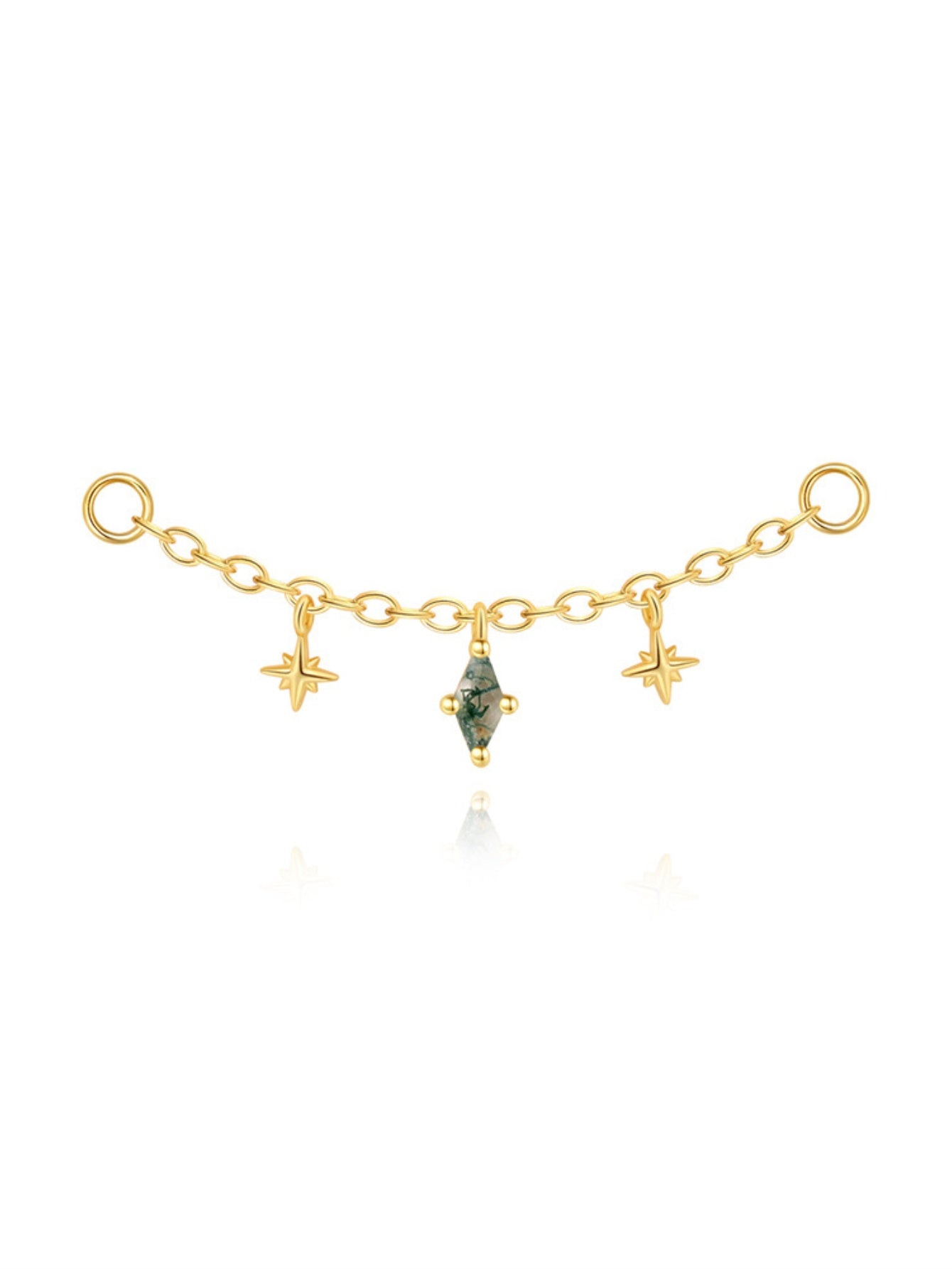 925 Sterling Silver Moss Agate Star Charm Ear Chain Connector