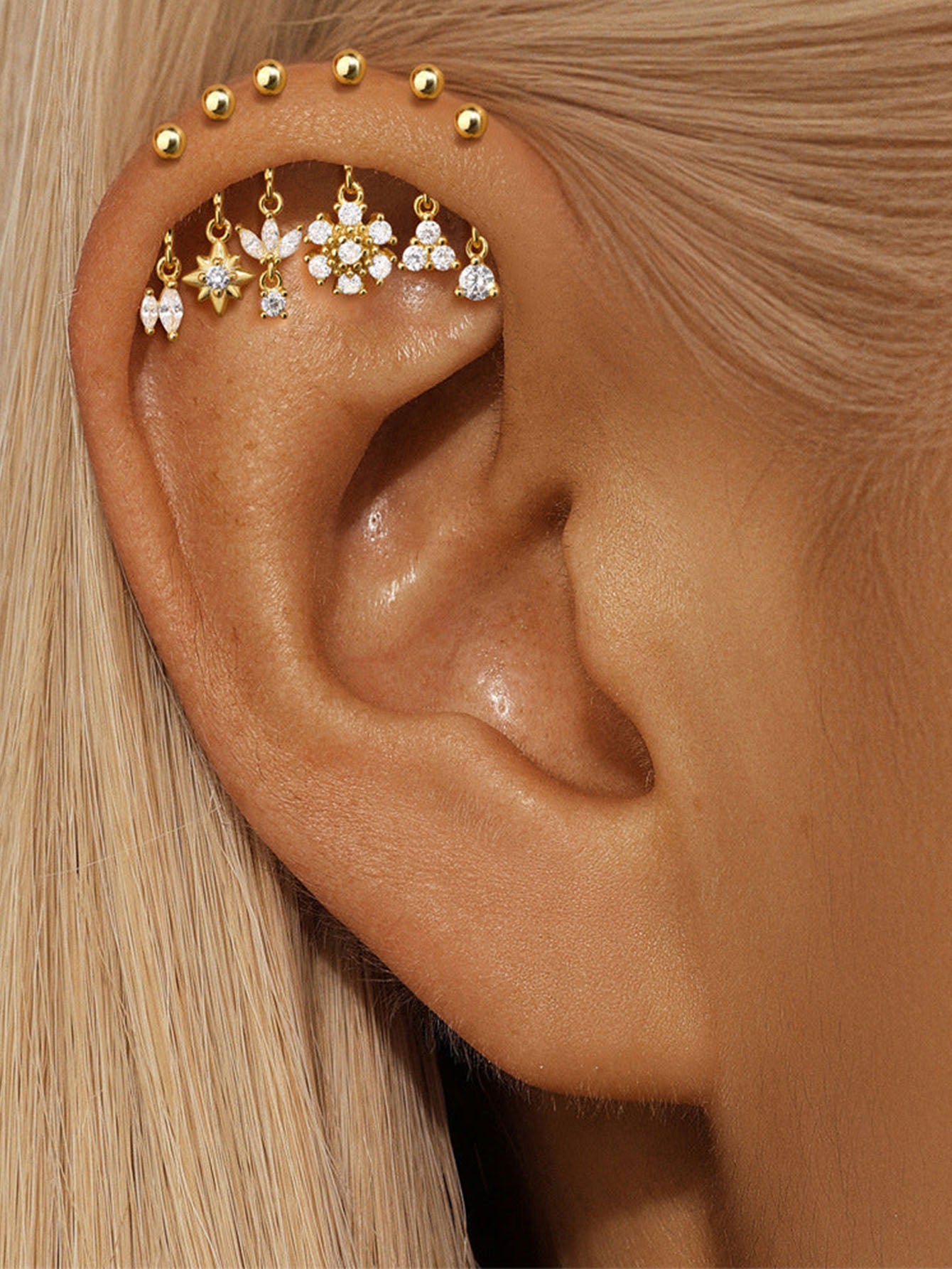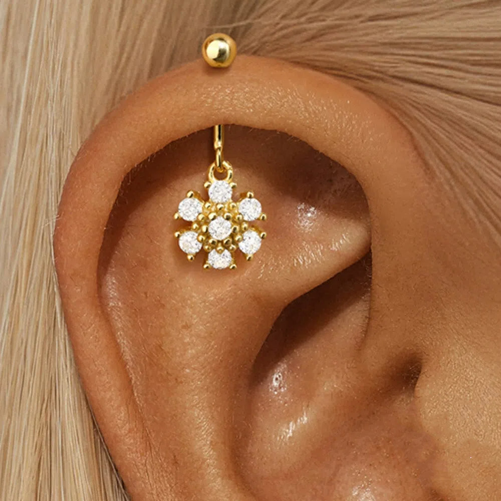 925 Sterling Silver Snowflake Horse Eye Ball Back Vertical Thread Piercing