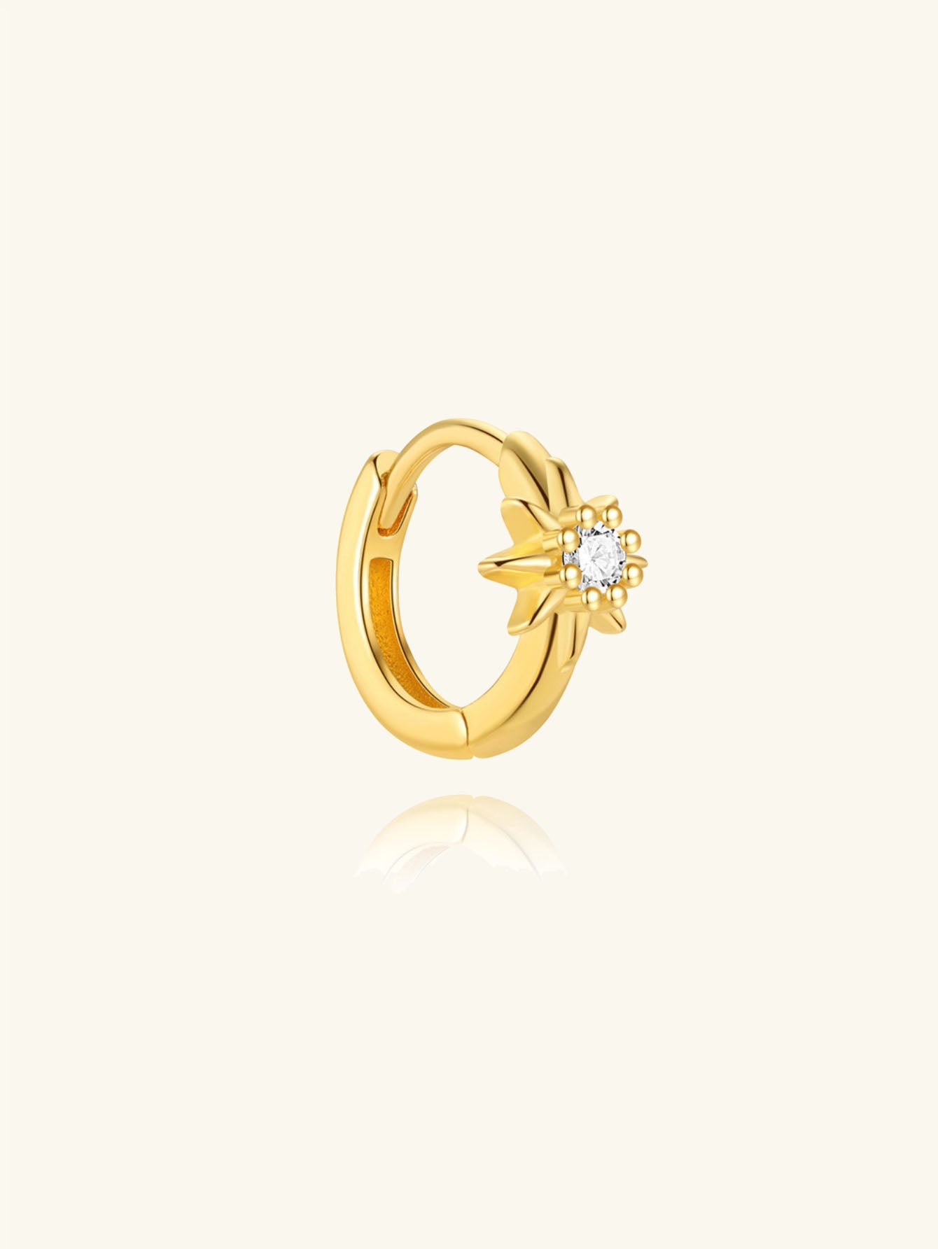 925 Sterling Silver Starburst CZ Huggie Hoop Earring