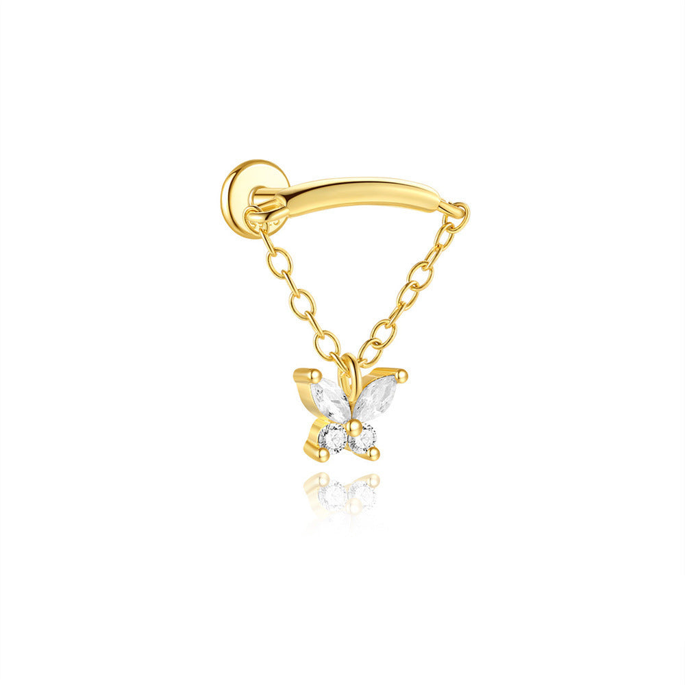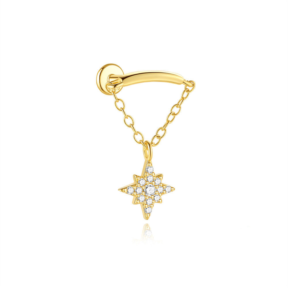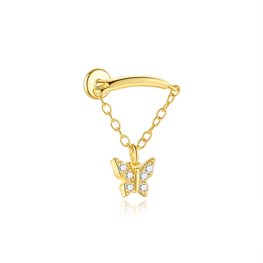 925 Sterling Silver Tassel Chain Flat Back Piercing Earring