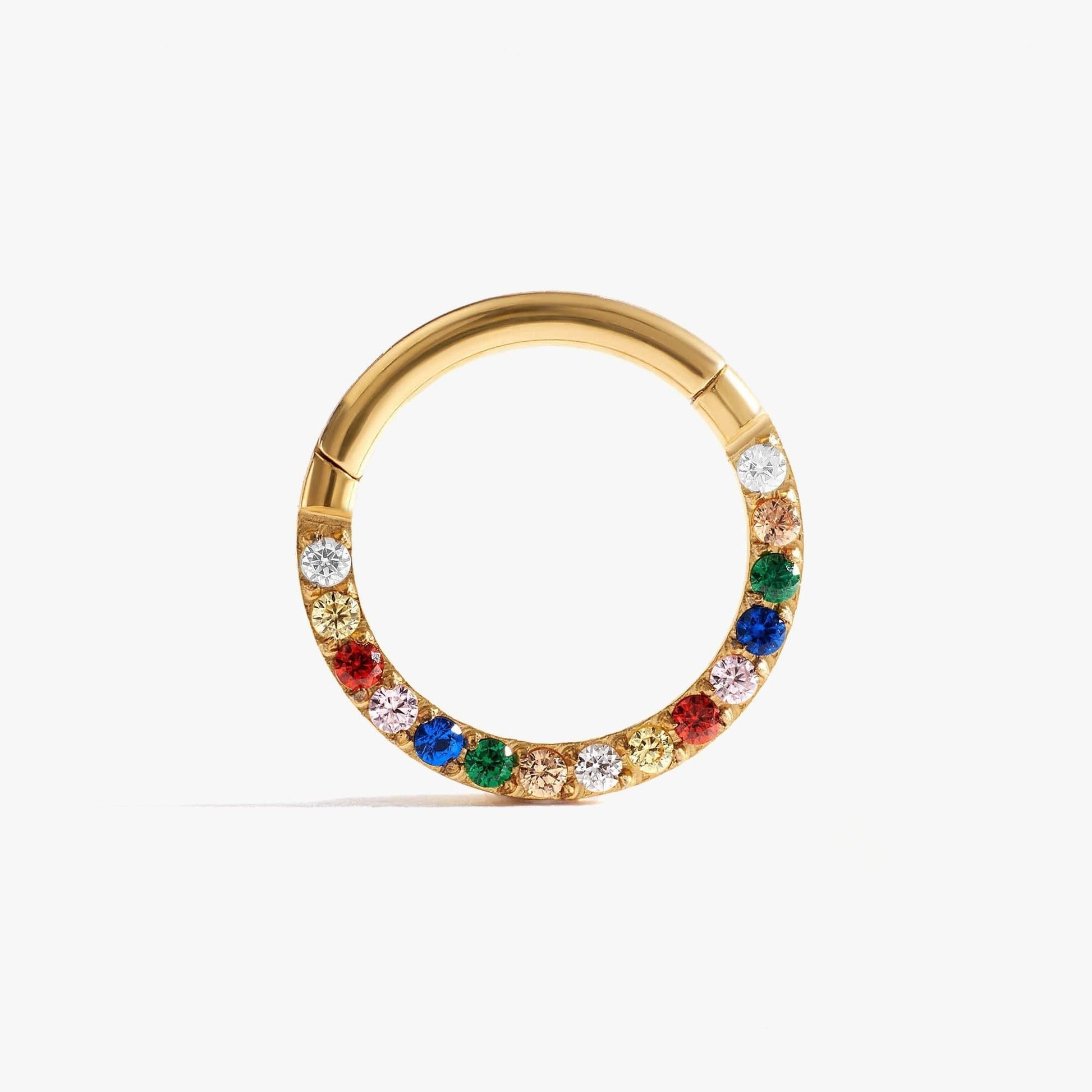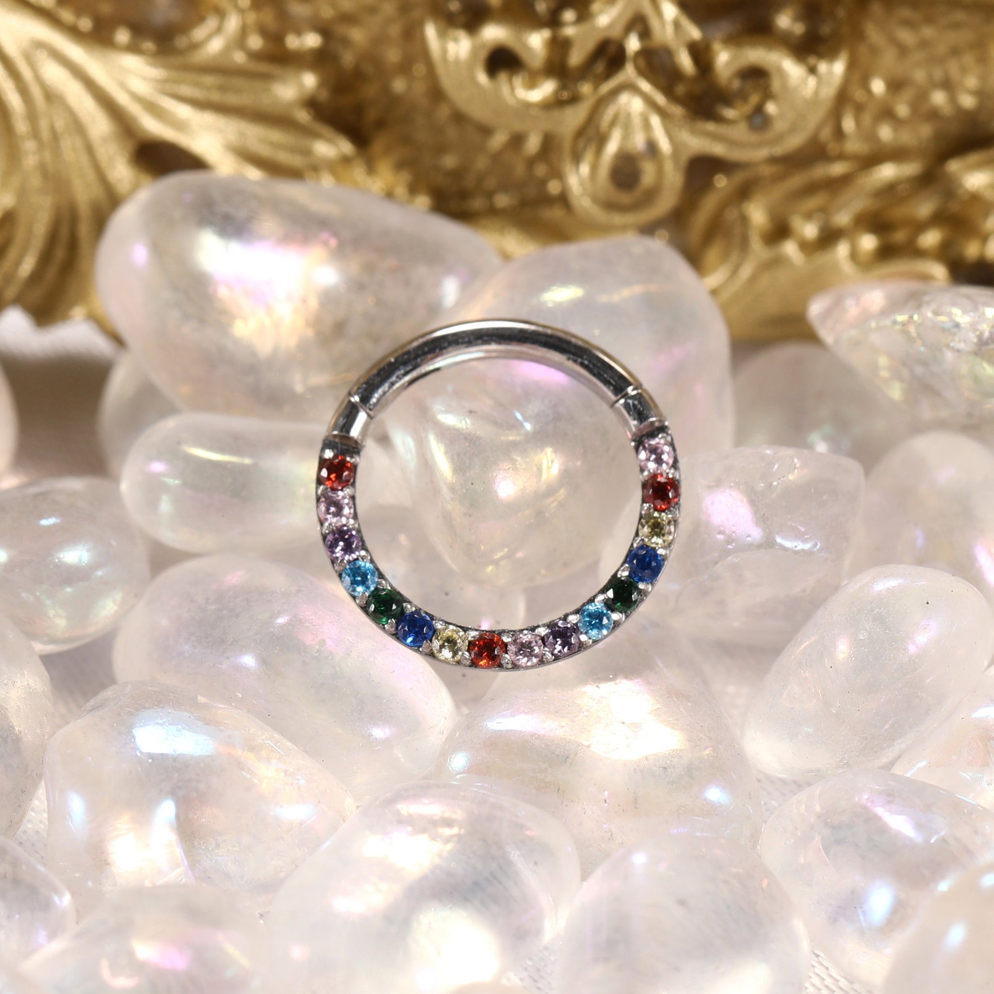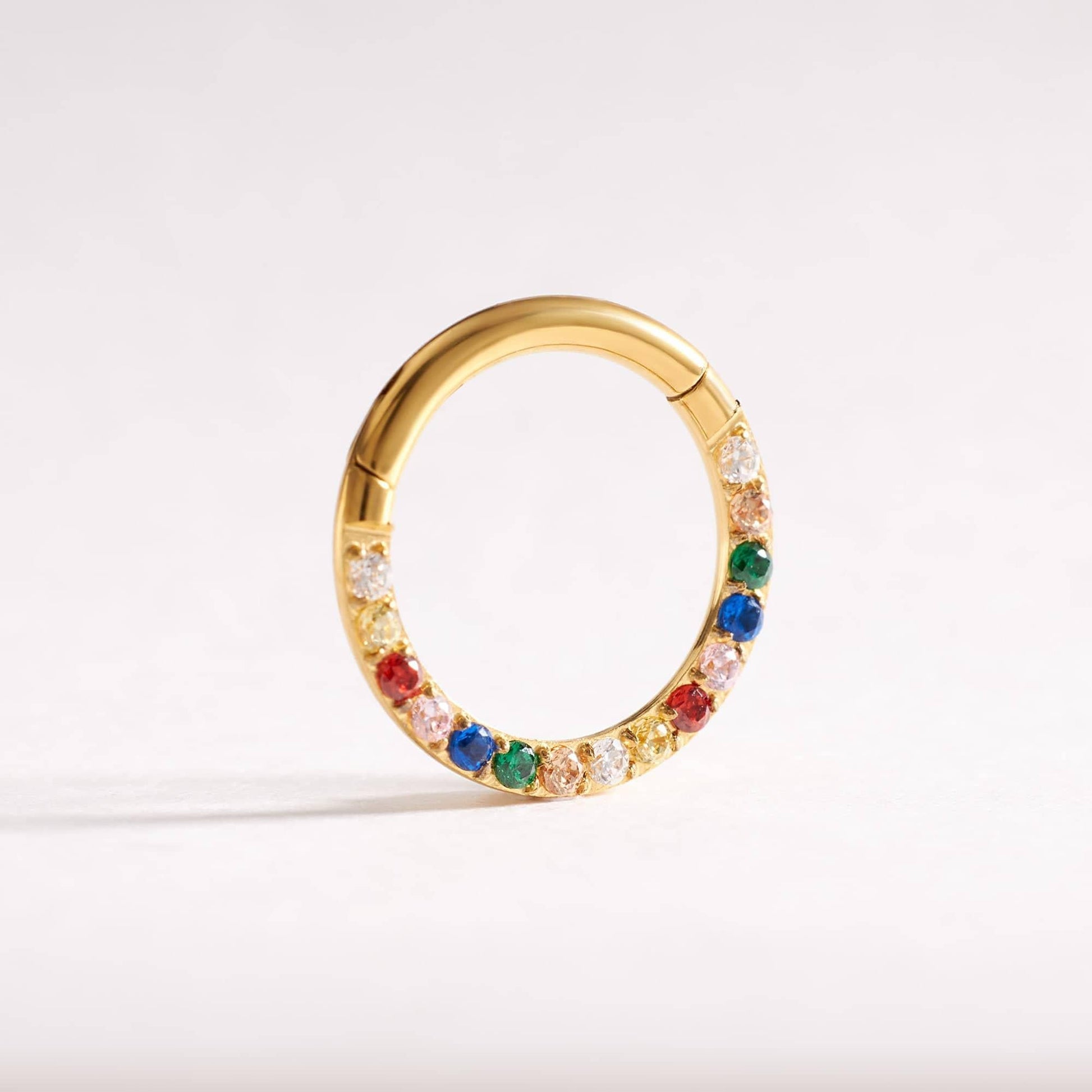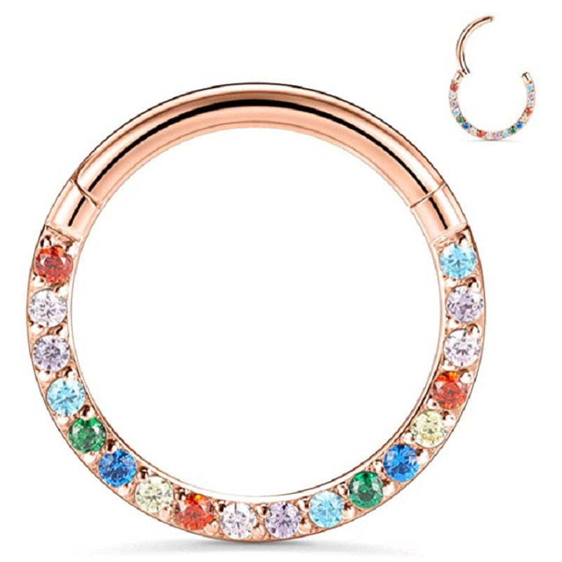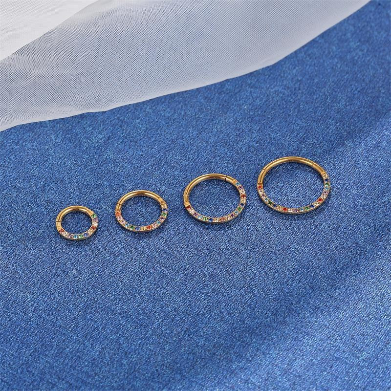 G23 Titanium Waterproof Rainbow 5A CZ Clicker Hoop for Daith & Septum Piercings