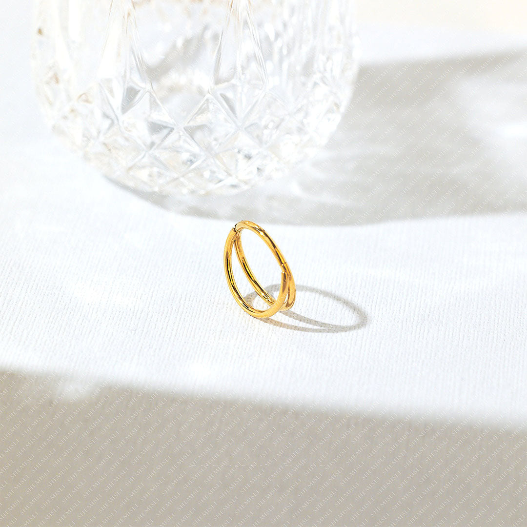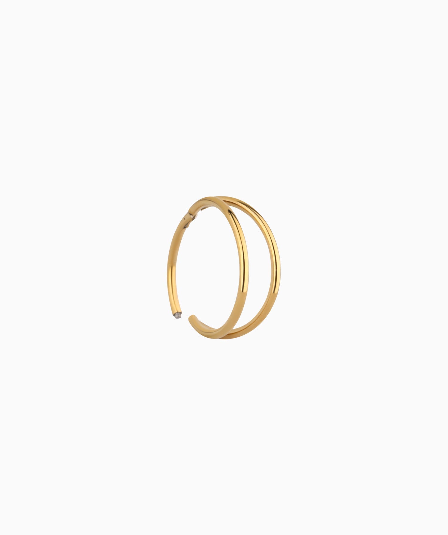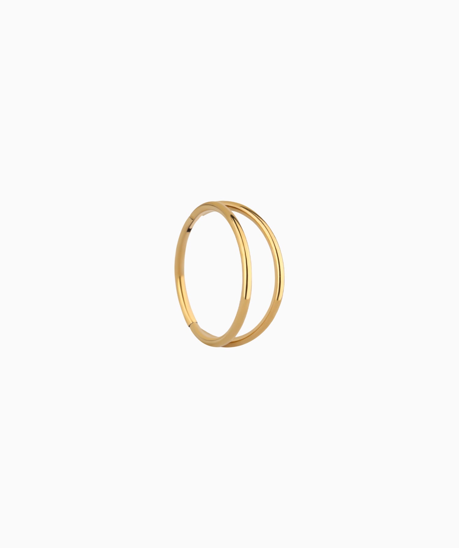 This double layer clicker hoop offers a sleek design that enhances any piercing. Ideal for conch, nose, or helix piercings, it combines simplicity with style for a timeless accessory.