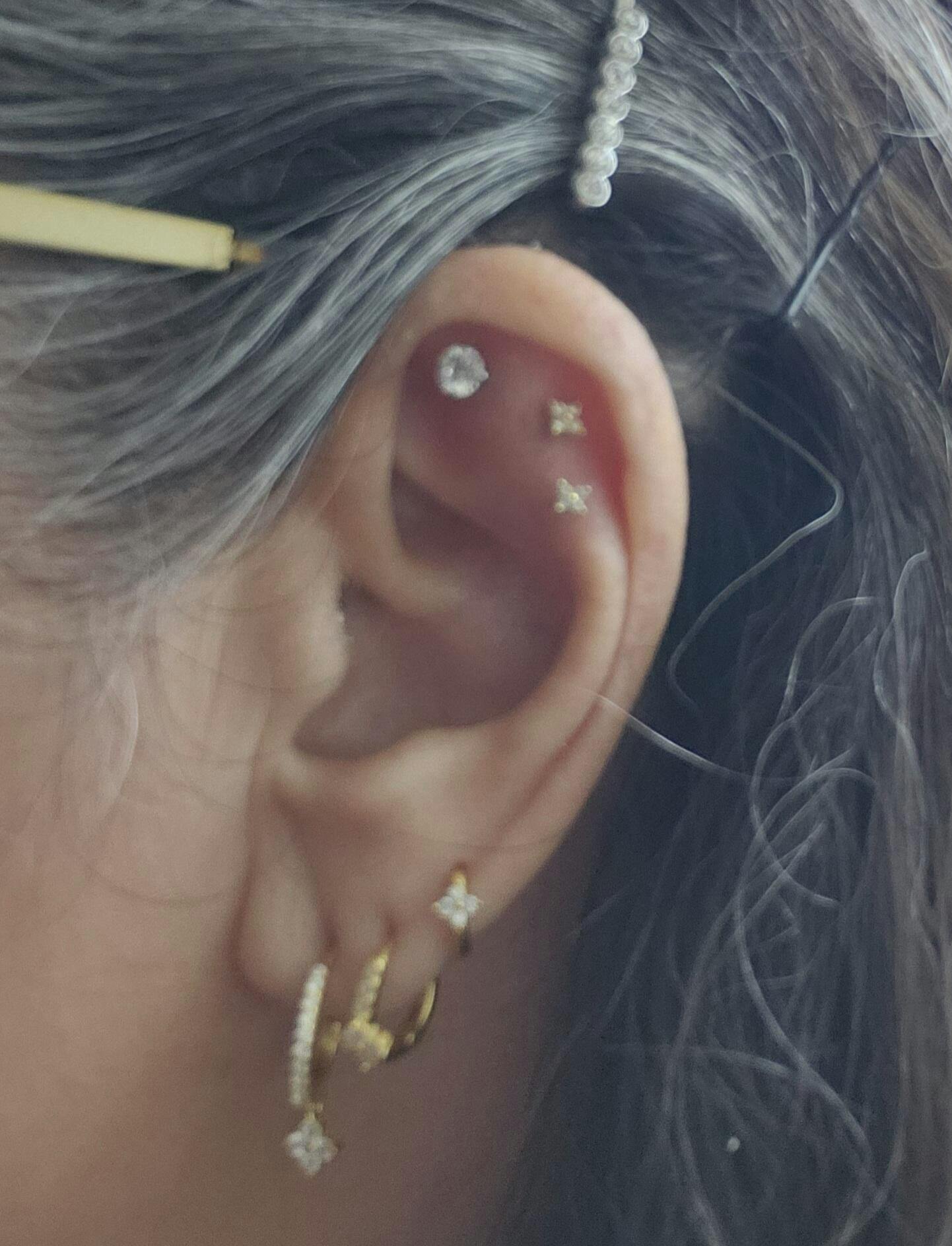 Couldn't wait to wear them! I got the matching 3 piece post set, too. All six pieces look great on my ear!