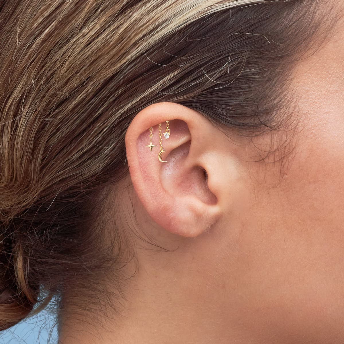 S925 Moon Star Tassel Zircon Ear Piercing Stud