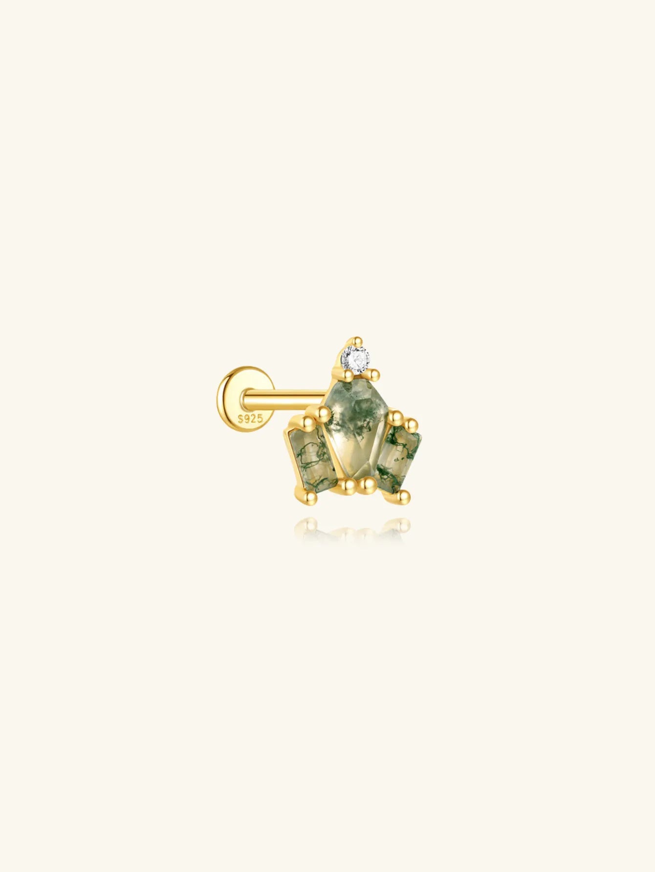 S925 Moss Agate Crown Flatback Piercing Stud Earring