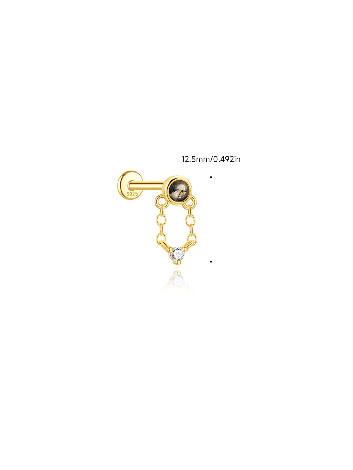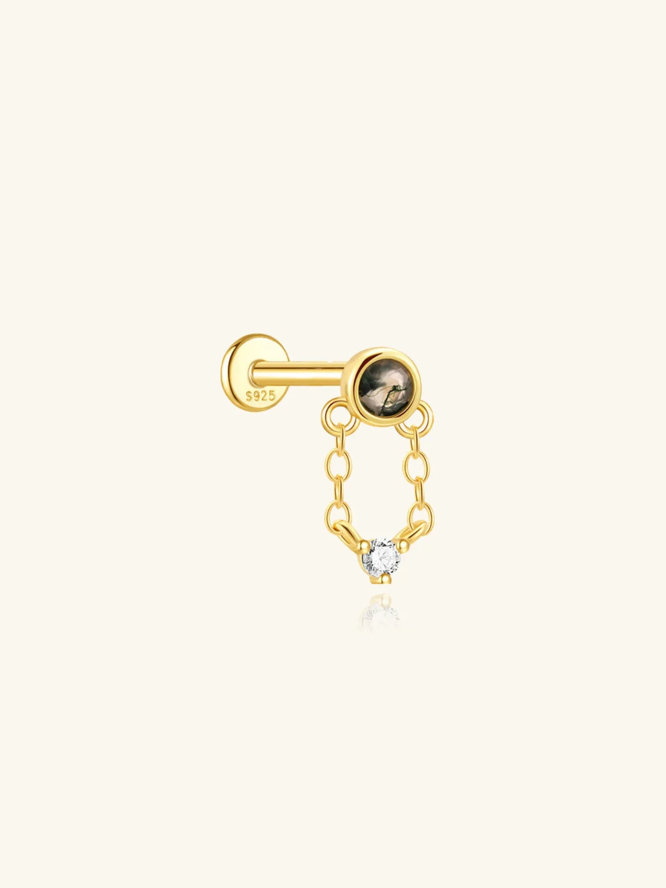 S925 Moss Agate Round Pendant Flatback Piercing Stud Earring