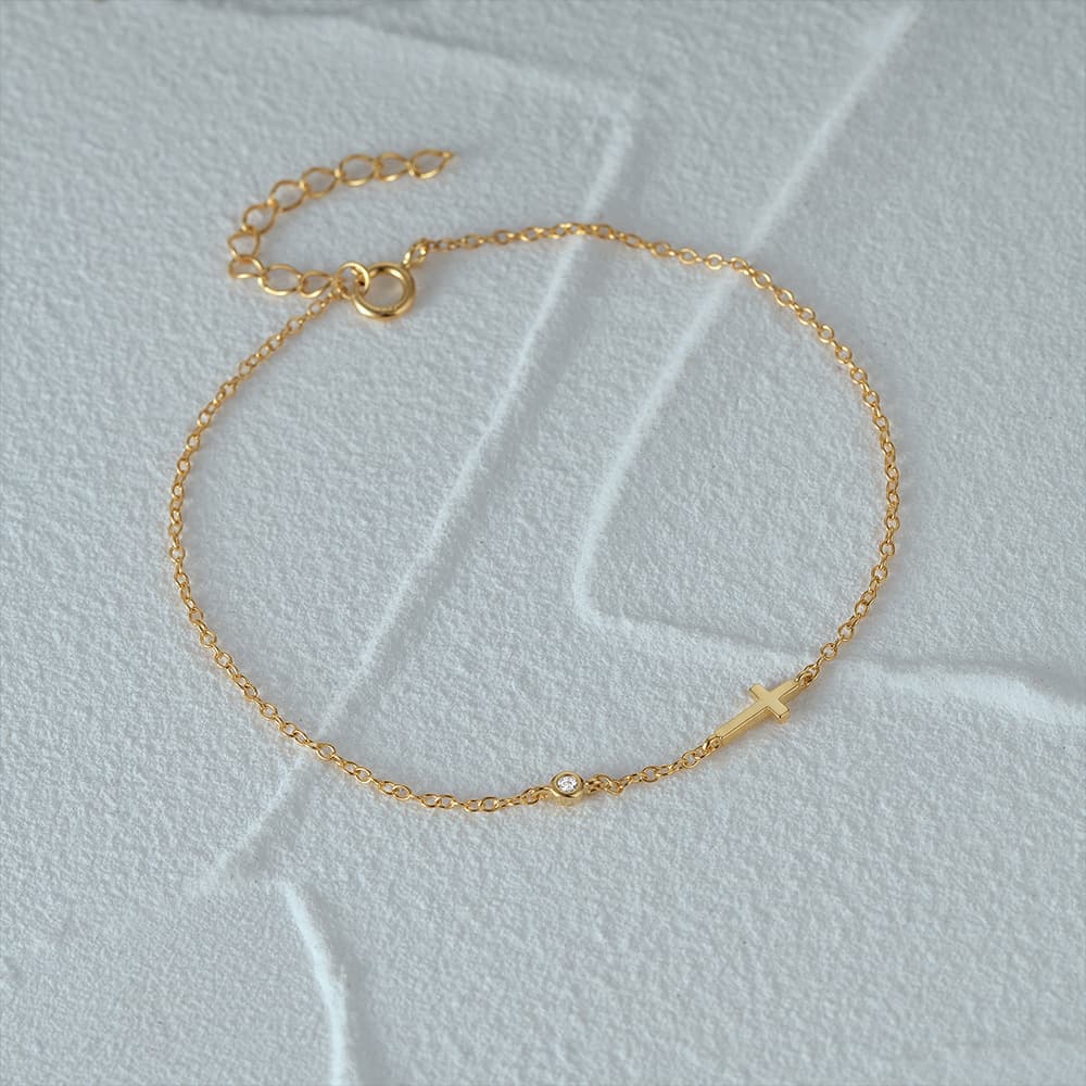 S925 Sterling Silver Cross Single CZ Women's Bracelet