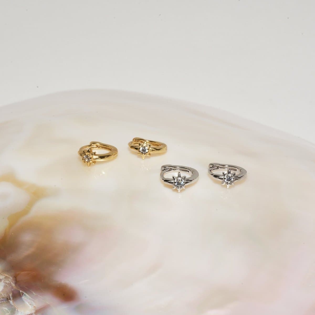 S925 Sterling Silver Starburst Huggie Hoops Earrings