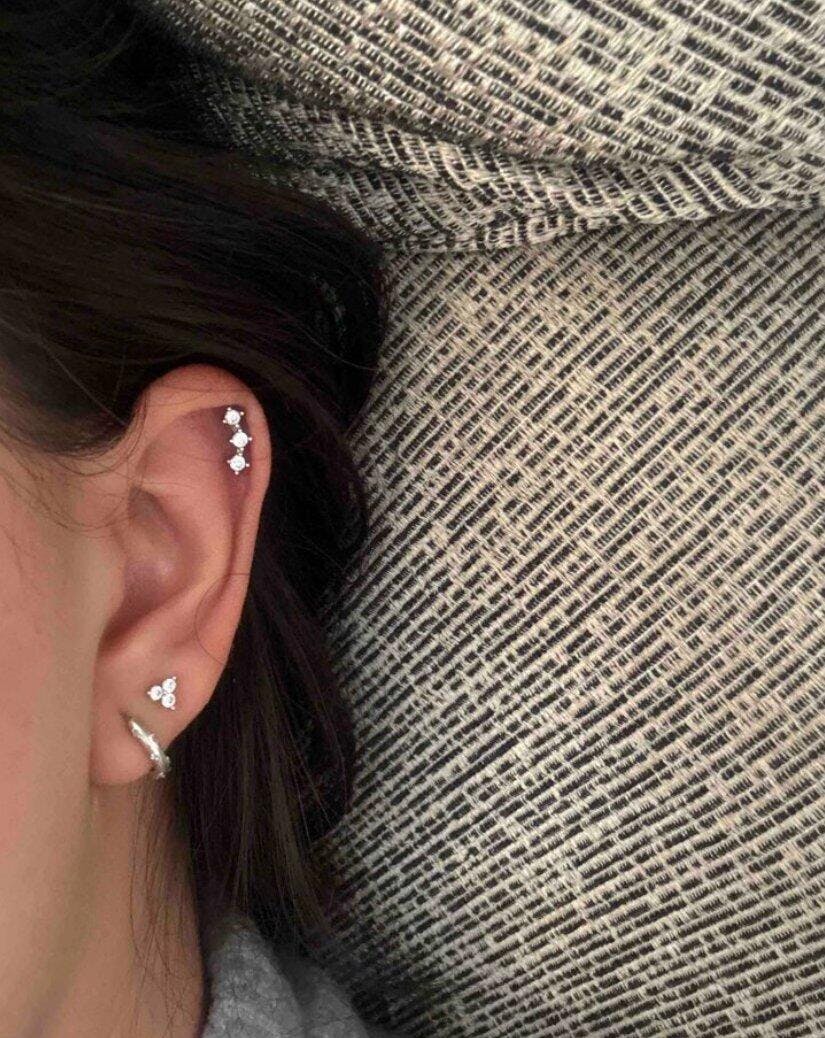 S925 Sterling Silver Trinity Shiny Ear Piercing Stud