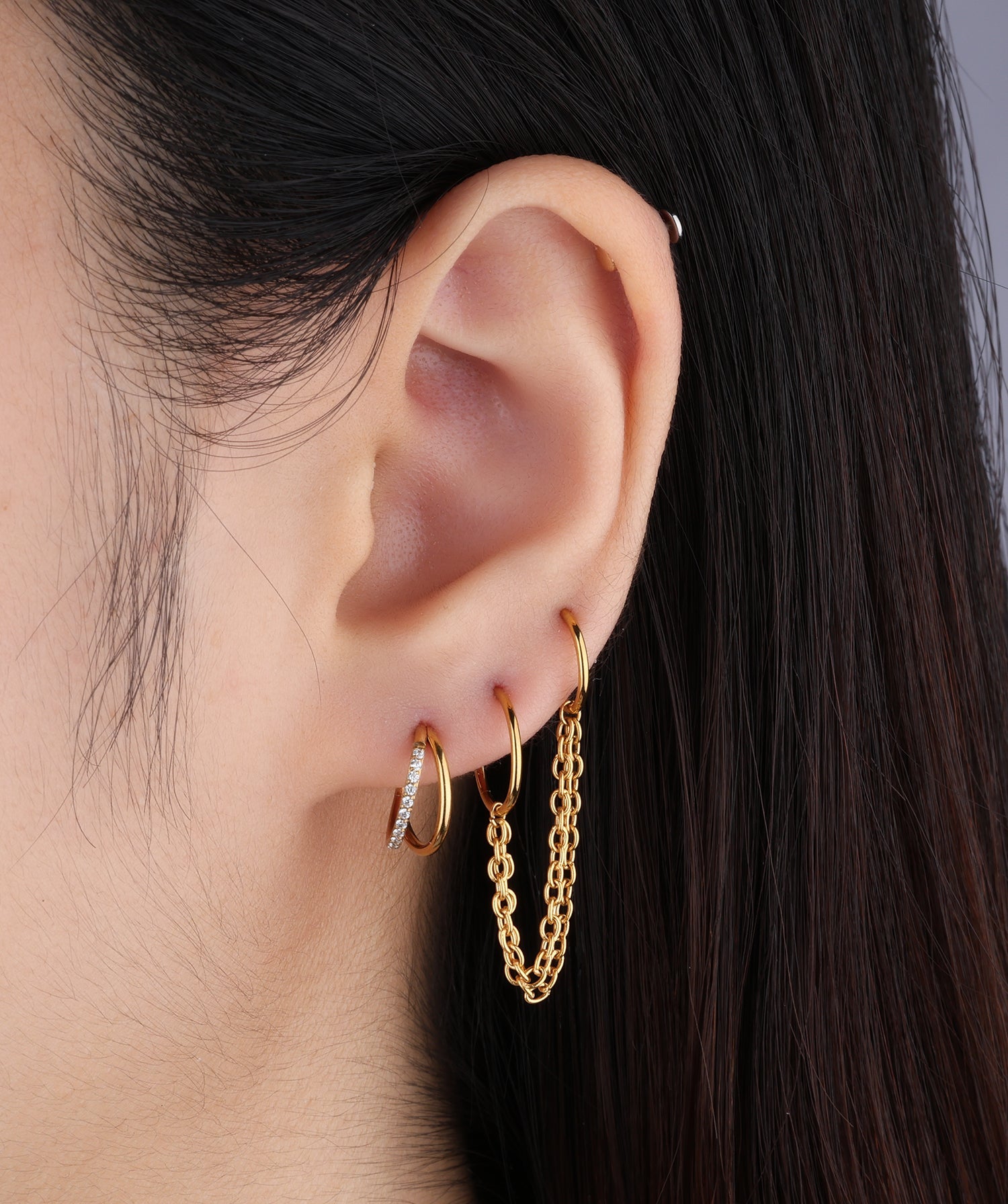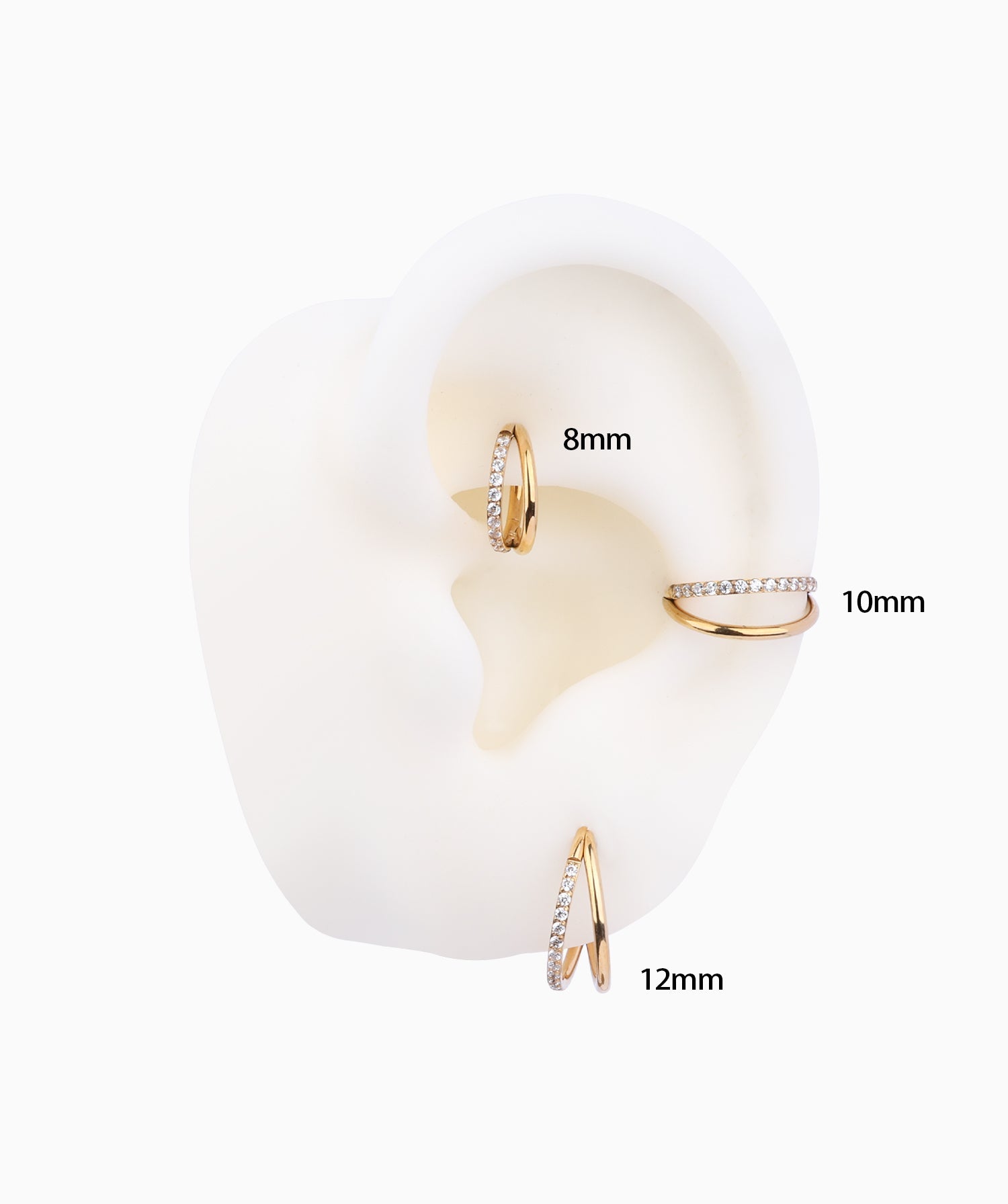 These double-layer clicker hoops feature delicate pavé-set stones for just the right amount of shine. Lightweight, secure, and effortlessly chic — perfect from office hours to after hours.