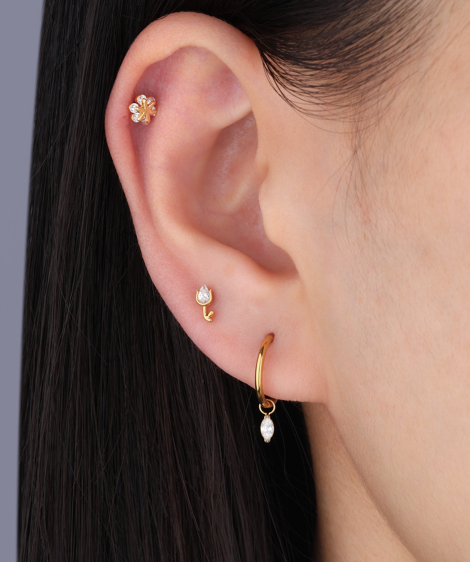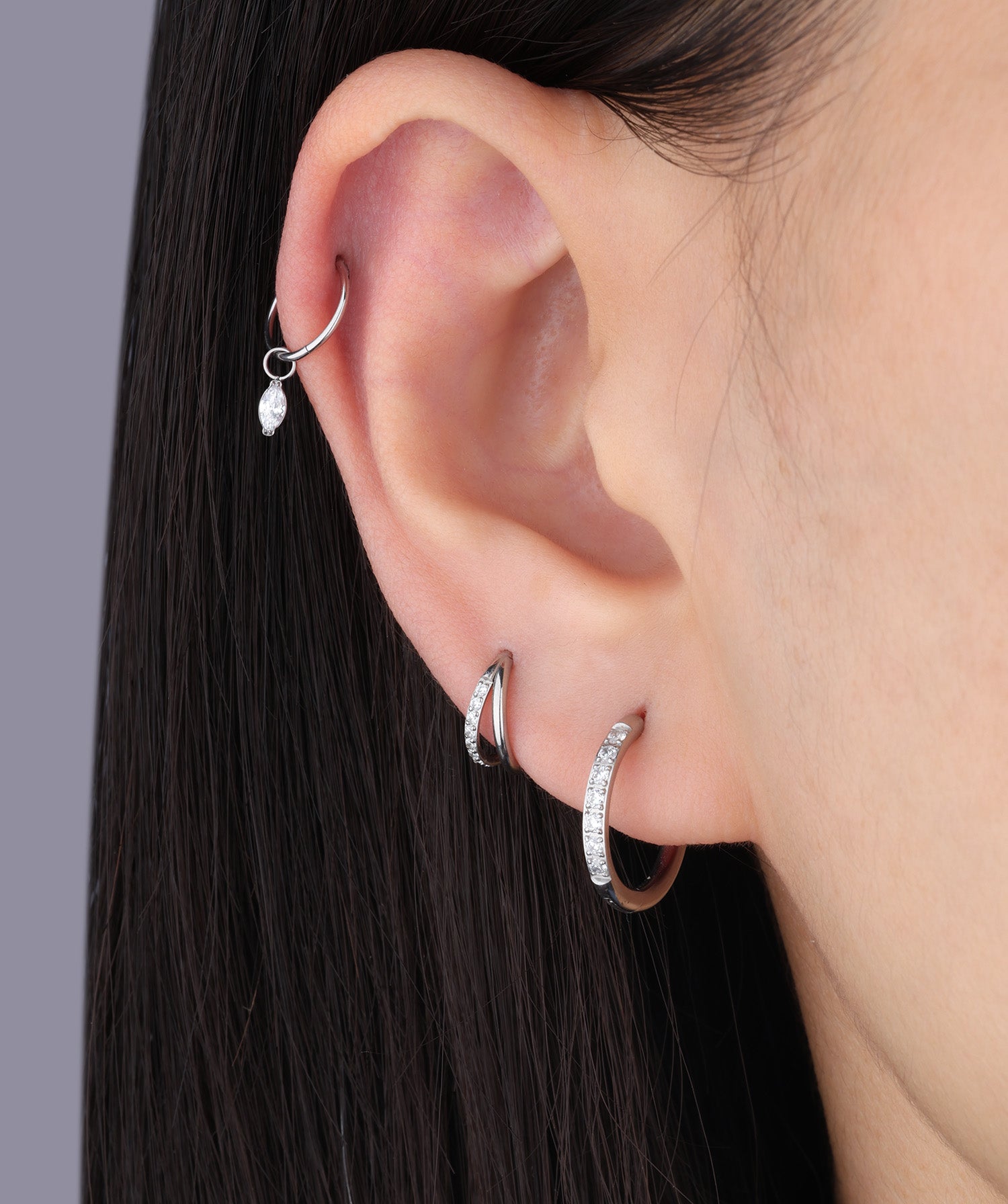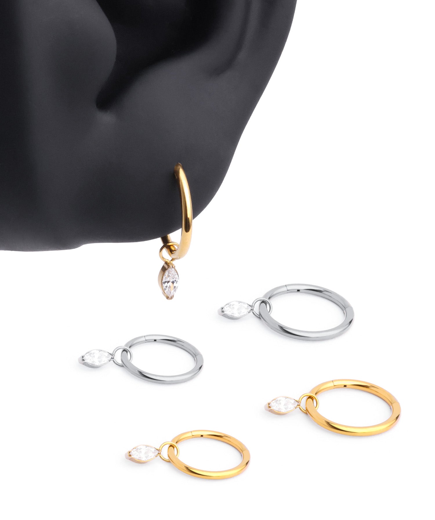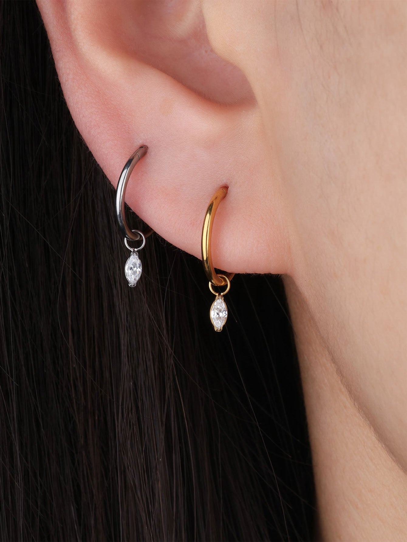Crafted from lightweight titanium, the Marquise Dangle earrings offer a sleek silhouette with effortless stackability. Ideal for everyday wear with a modern, elevated touch.