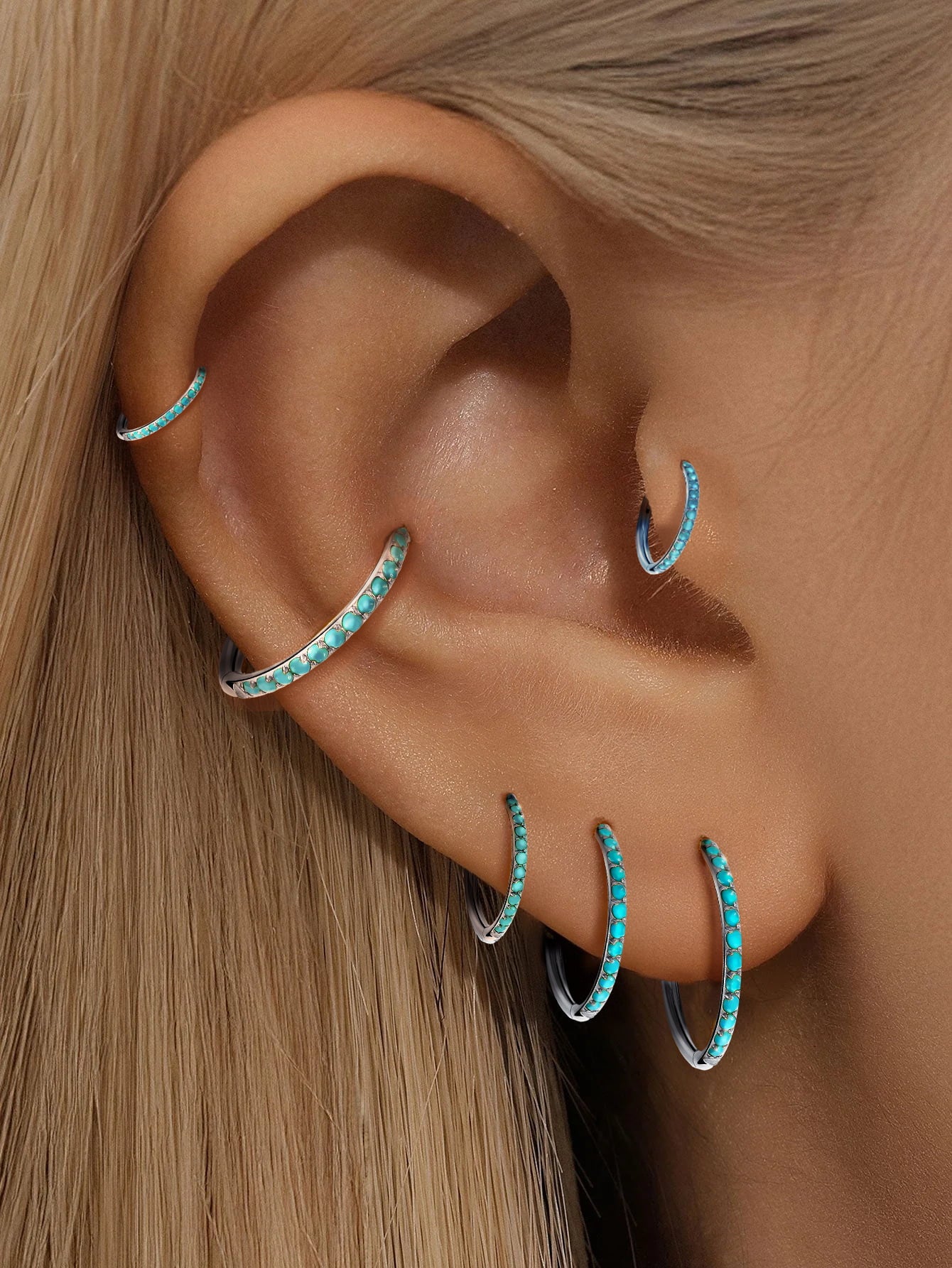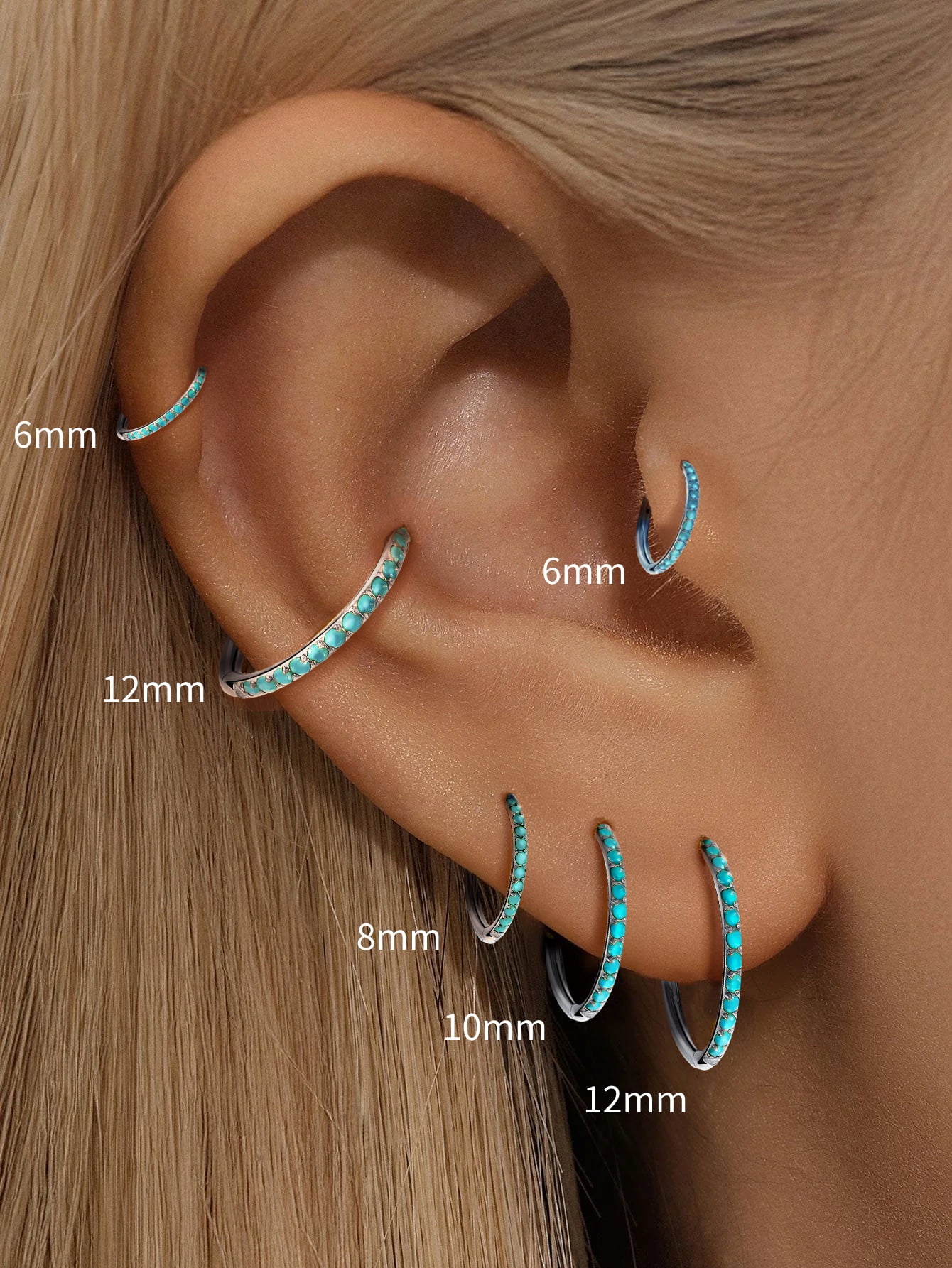Titanium Waterproof Multiple Sizes Turquoise Cartilage Hoop
