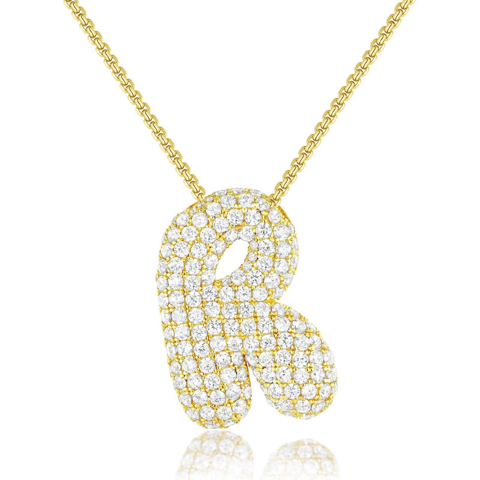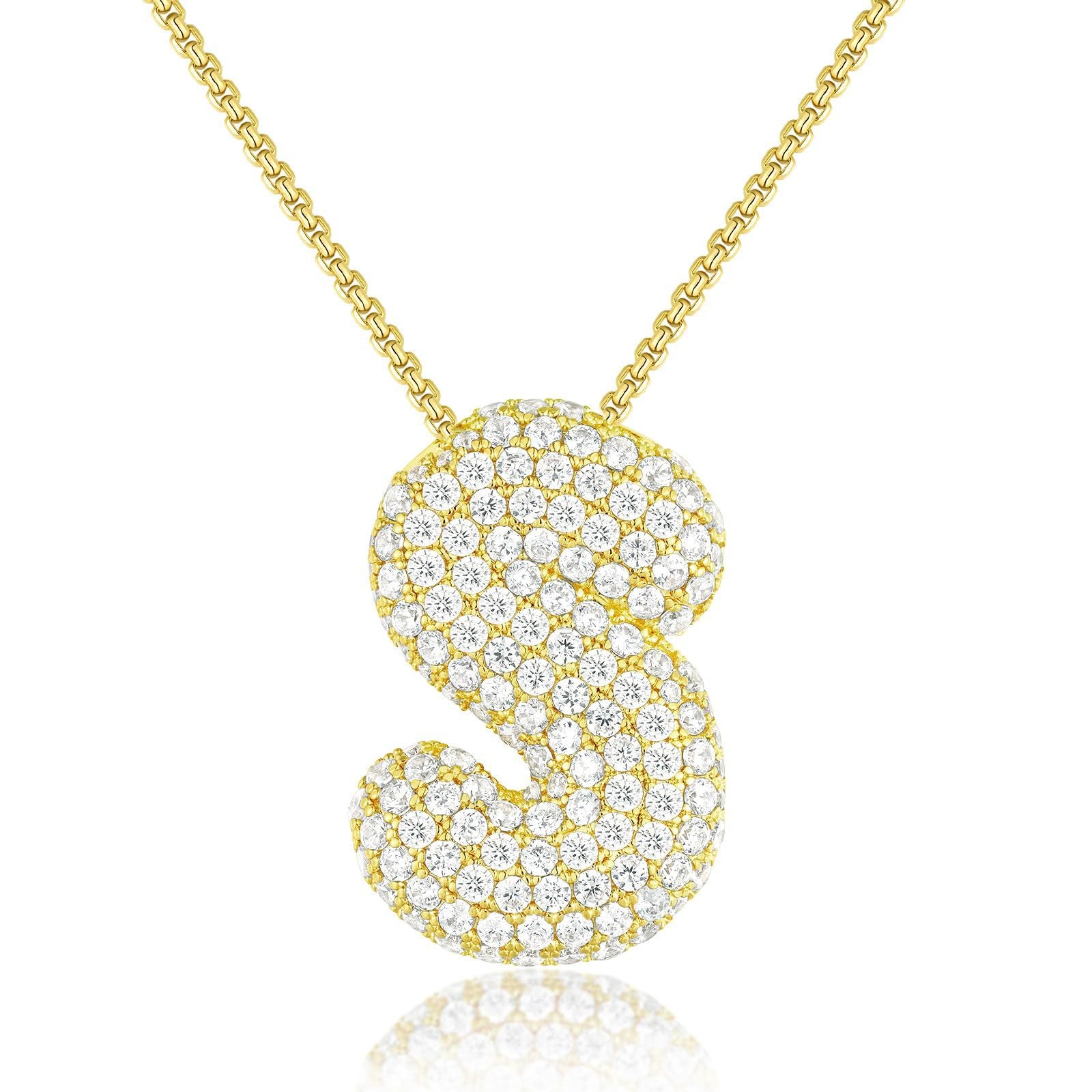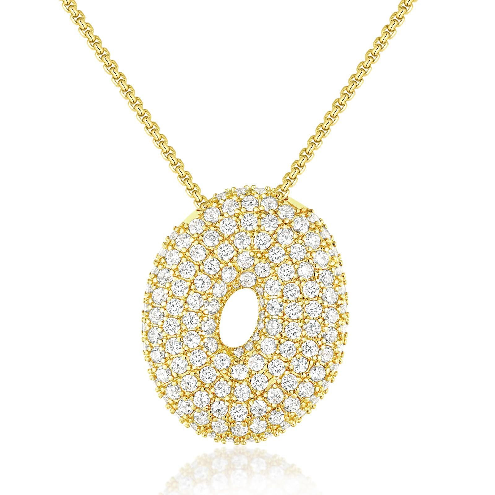 Waterproof Titanium Steel 26 Letters Zircon Pendant Necklace